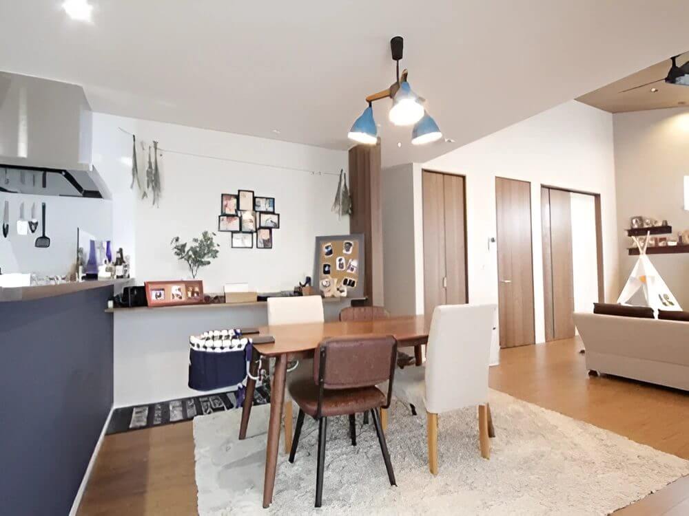 ご家族が好きな色使い(ウォルナット系の木目や紺色)でデザインを仕上げ、断熱性能においても満足いただいています。