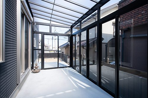 リビングから直接出られるサンルームは、コンクリート土間にしたことで様々な趣味スペースとして活用できる場所に。ロードバイクやお花を雨風から守り、寒さに弱い観葉植物の避難スペースにもなります。室内と室外をつなぐスペースになり、さまざまな趣味に使えるお部屋に仕上がっています。