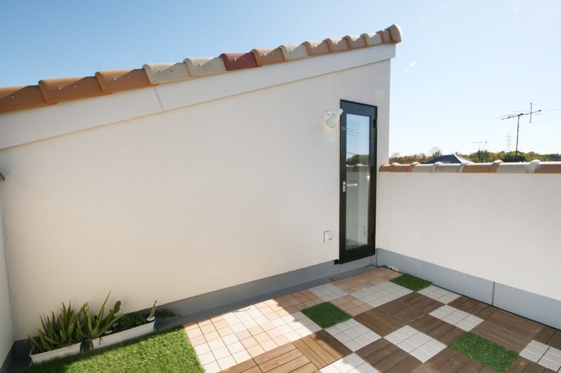 外観からは見えない位置にプライベートな屋上庭園を設置した事例です。