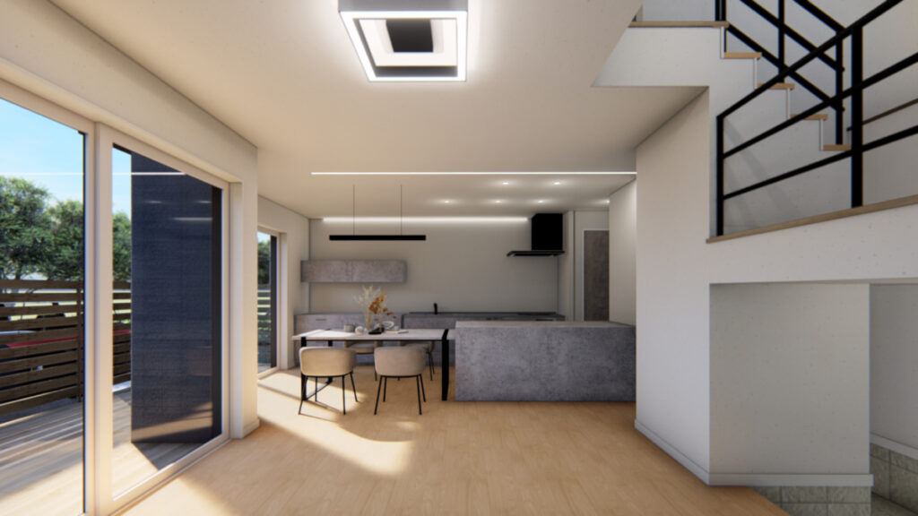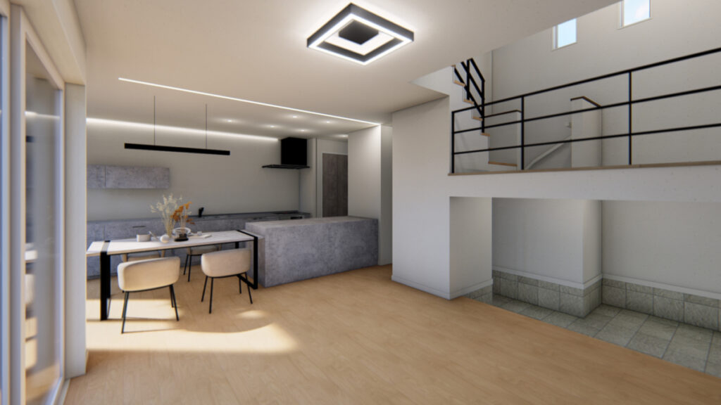 半地下や中二階を巧みに組み合わせたスキップフロア構造が、住まい全体に立体的なリズムと遊び心をもたらします。