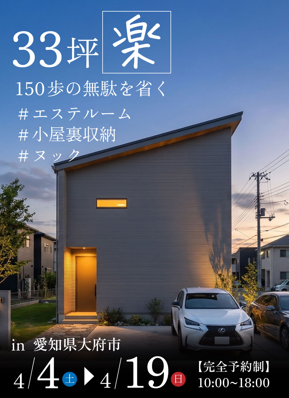 「33坪楽」150歩の無駄を省く~完成見学会◆最大3万円分/初回1万円分プレゼント!