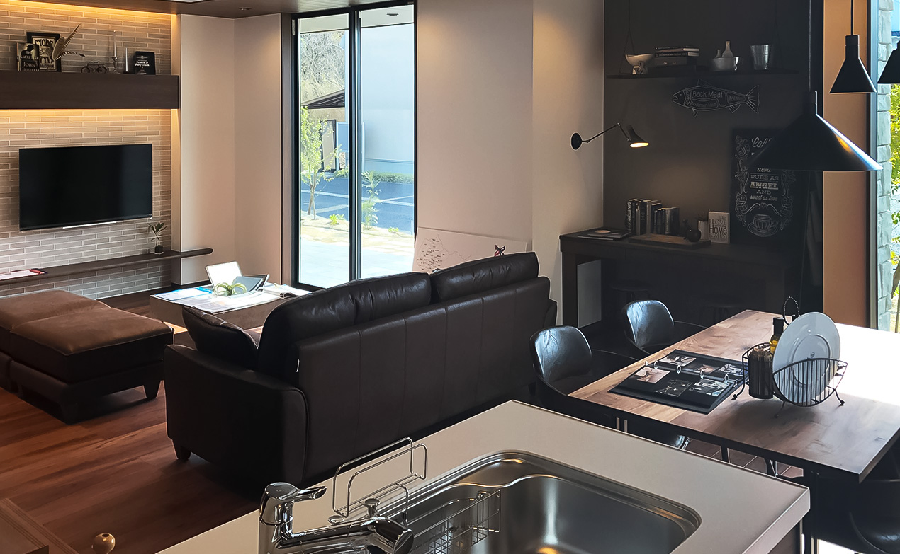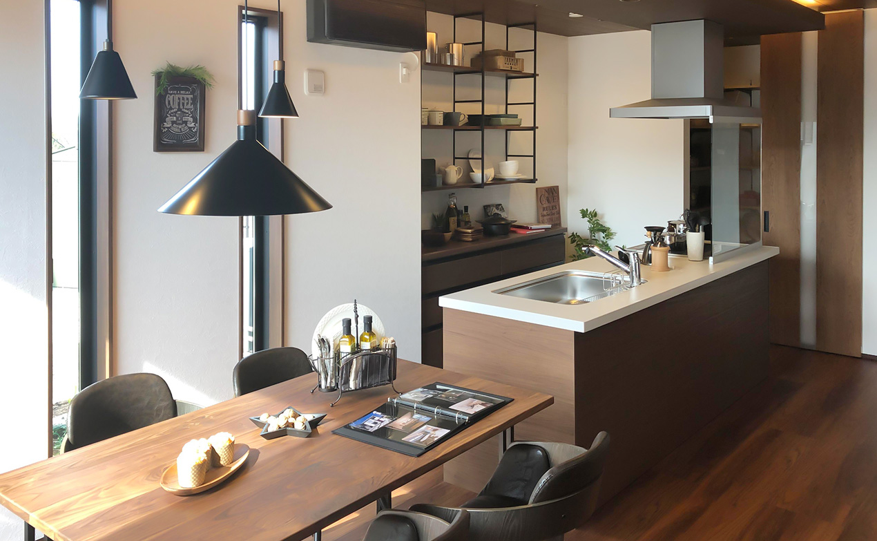 キッチンを中心とする家事動線にこだわった間取り。どんな家でどう暮らすか、体感しながら考えてみてください! -