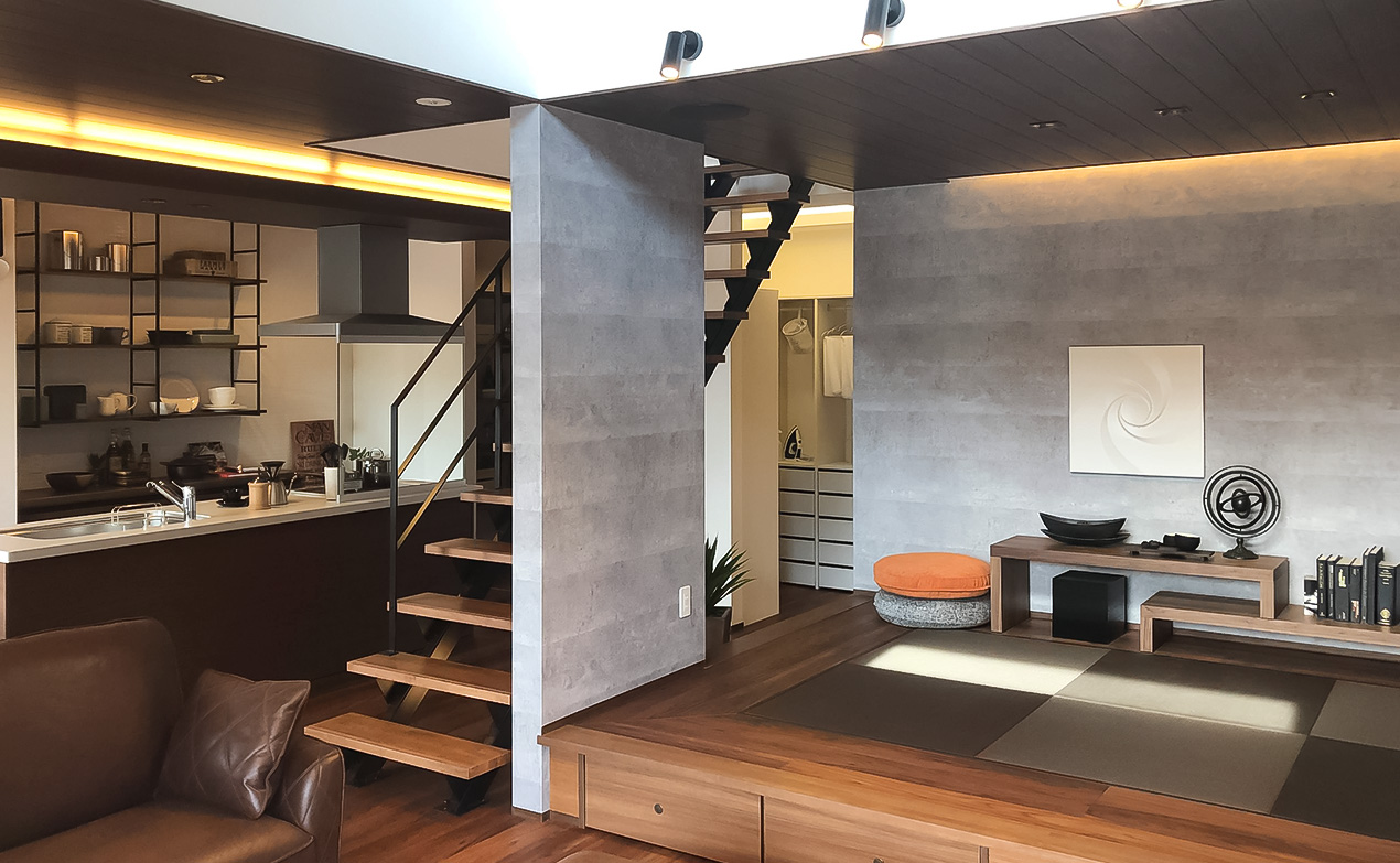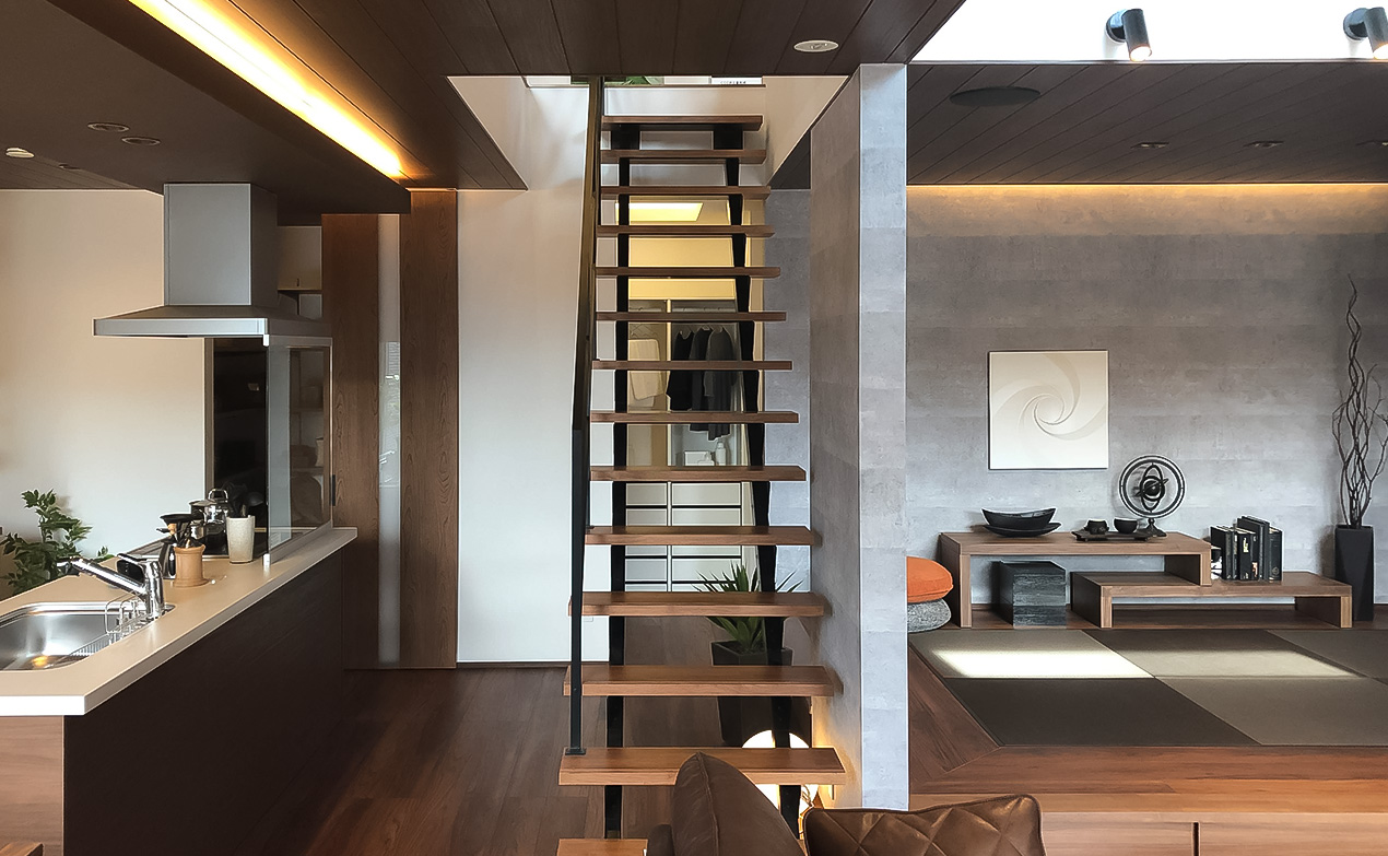 蹴込み板がないストリップ階段を採用すると、下の階にまで光や風が届きやすくなり、開放感が出ます。