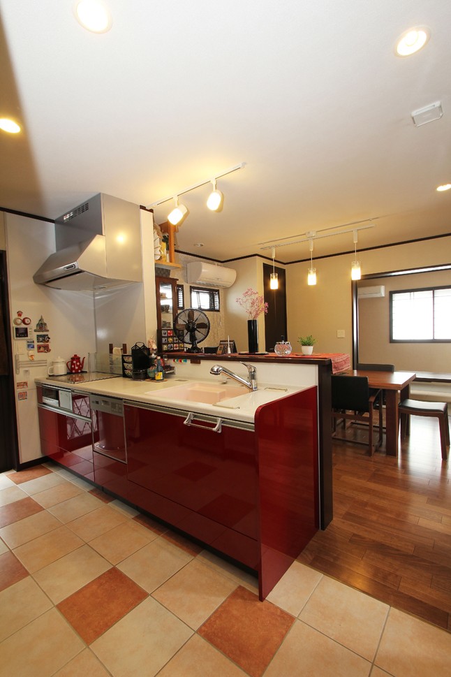 もともと大規模リフォームを計画されていたA様ご家族。間取りやしつらえを参考する為に訪れた立川展示場で提案されたプランを一目で気に入り、そこから建て替えがスタートしました。外観は、奥様の出身地で紬(つむぎ)の里としても有名な、茨城県結城市の古き良き街並をイメージし、メリハリの利いたトーンのデザインに。建物全体を引き締める黒い幕板と縦貼りのダークなサイディングが印象的です。中に一歩踏み入ると、吹き抜けの大空間にひと際の存在感を放つ、造作のリビング階段が出迎えてくれます。外からの日射しと、気密・断熱性の高い性能のおかげで、「冬でも本当に暖かい」と語っていただいた奥様の言葉が印象的でした。またリビング階段下のデッドスペースには障子をはめ込んだ収納スペースや、和室の地窓や畳の切り替えなど、和のテイストをふんだんに盛り込んだ遊び心を随所に満載。使いやすく、どこか懐かしいテイストに仕上げられました。また、吹き抜けを作ると足りなくなりがちな収納スペースも、小屋裏収納を作ることで解決。A様ご家族も大満足な一邸となりました。
