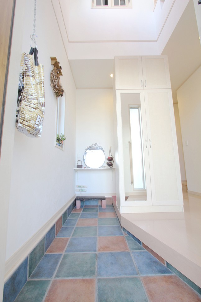 街道沿いの開けた住宅街にひときわポップなカラーリングが目を引くK様邸が完成致しました。オーガニックかつナチュラルなテイストで統一されたK様邸の見所はなんといっても建物中央に配された階段室と、それをぐるりと囲む大きなアール形状の壁です。直線的なレイアウトになりがちな戸建て住宅の中に大胆にとりいれたアール壁が、オリジナリティかつ唯一無二の個性を演出しています。また、この大きなアール壁には小さな窓が設けられ、帰宅したご主人やお子様とのコミュケーションに一役買っています。「リビング階段ではないけど、リビング階段の機能を」という奥様のアイデアが形になりました。また、キッチンカウンター隅の間柱や、リビングの化粧梁の古木風の加工には、施工中に奥様も参加。職人さん達に混じって、和気藹々と作業は進められました。家中、至るところに奥様のアイデアとセンスが光るコーディネートで訪れるたびに新鮮な驚きを感じさせてくれるK様邸です。